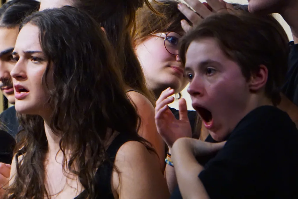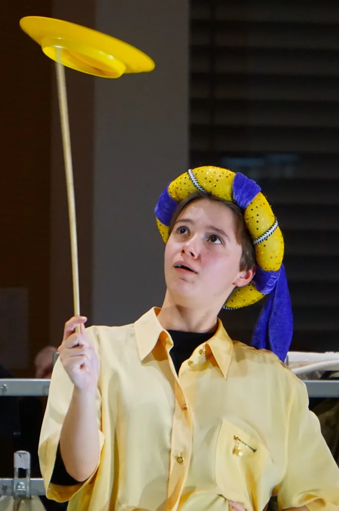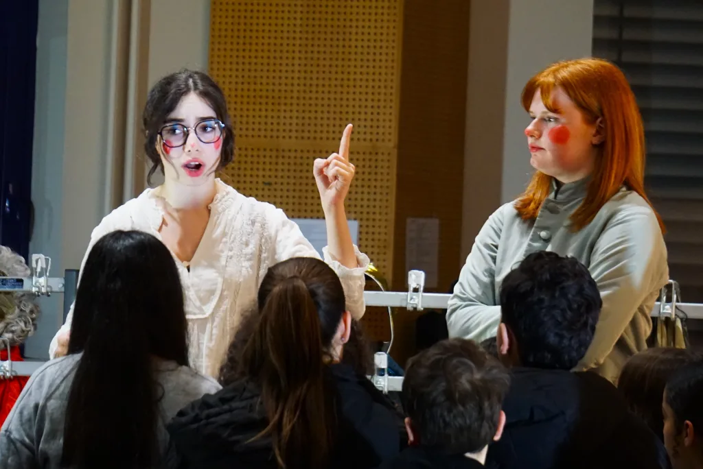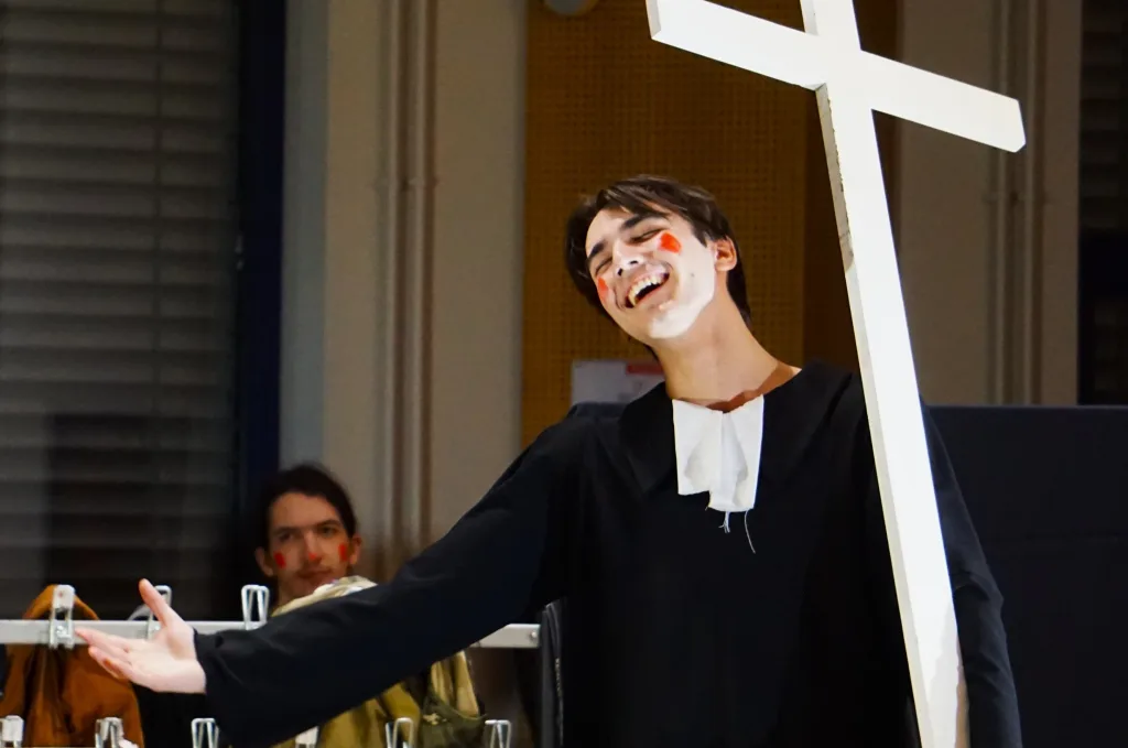 Le 22 janvier 2026, les élèves de la spécialité théâtre de terminale ont présenté leur travail sur 1789 du Théâtre du Soleil mené avec le comédien Gaspard Raymond. Ils ont expérimenté le registre burlesque pour raconter la Révolution française du point de vue du peuple et à la manière de bateleurs.